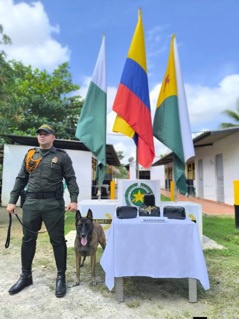 El procedimiento se desarrolló en el kilómetro 3 de la vía Planeta Rica, sector Centro Logístico de Montería, donde con el apoyo del canino antinarcóticos se inspeccionaron varias encomiendas. Durante la verificación, el ejemplar canino realizó señal positiva sobre una caja que contenía en su interior cuatro paquetes envueltos en bolsa tipo ziploc, con una sustancia vegetal verdosa que por sus características se asemeja a la marihuana.
