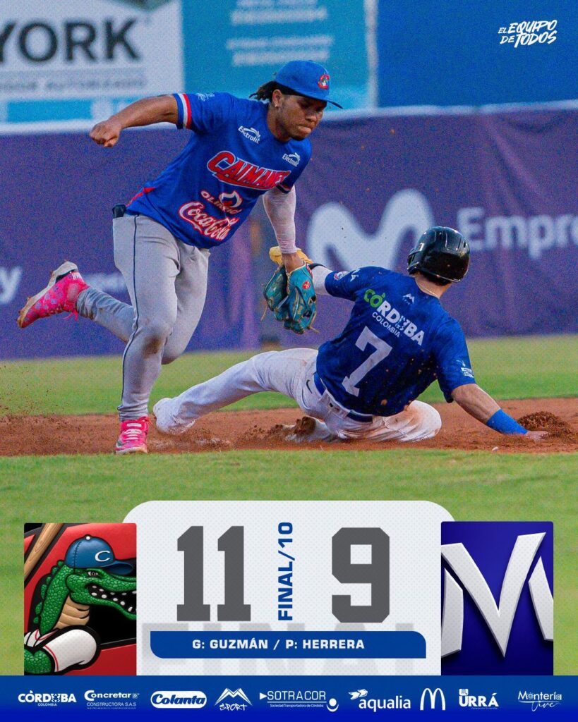 El equipo vaqueros pierde el juego de este domingo 7 de diciembre perdiendo 9 carreras por 11 ante el equipo caimanes de Barranquilla.